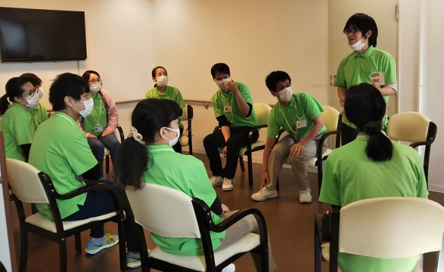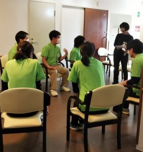 月に1回各施設から1名ずつ集まり研修を受けています。