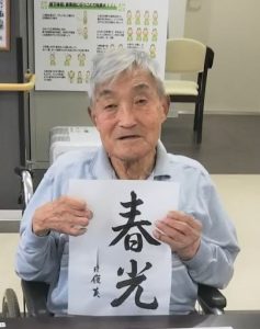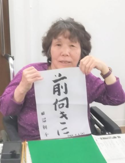 利用者さまより《前向きに》という言葉を書いていただき