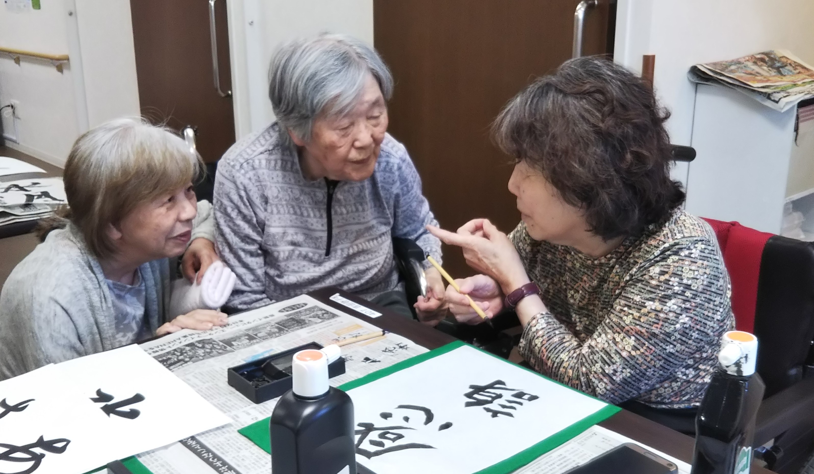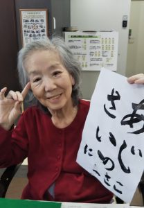 少人数で順にお集まりいただいて書道レクリエーションをしました(^^)/