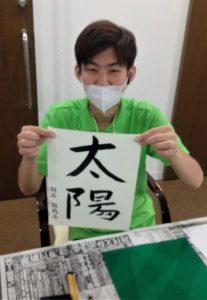 密にならない距離を保ちながら【書道レクリエーション】を行ないました。
