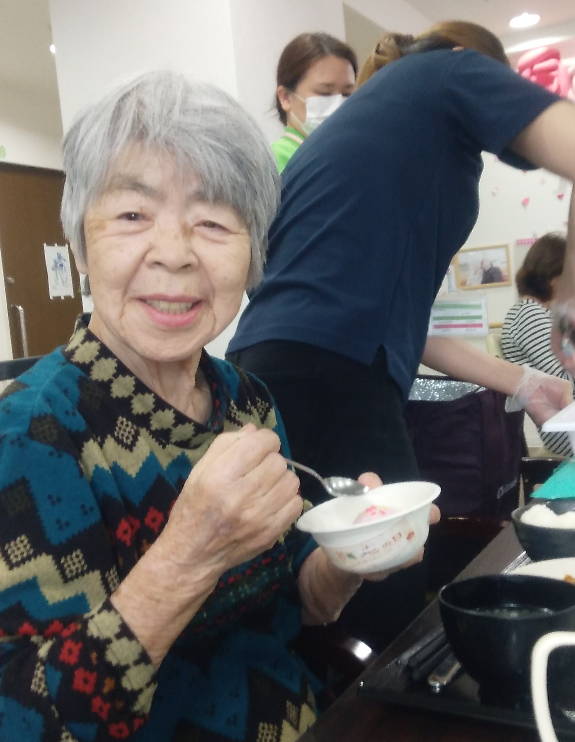 とーっても優しいN職員と穏やかなご様子で過ごされる入居者様。