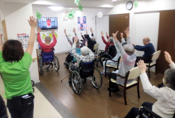 レクリエーションを提供する会社様とネットで繋がり歌や体操を楽しみます🎶