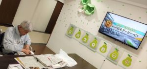 2Fの食堂へ行くとTVの前でスポーツ新聞を広げて