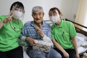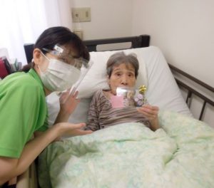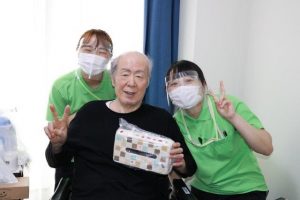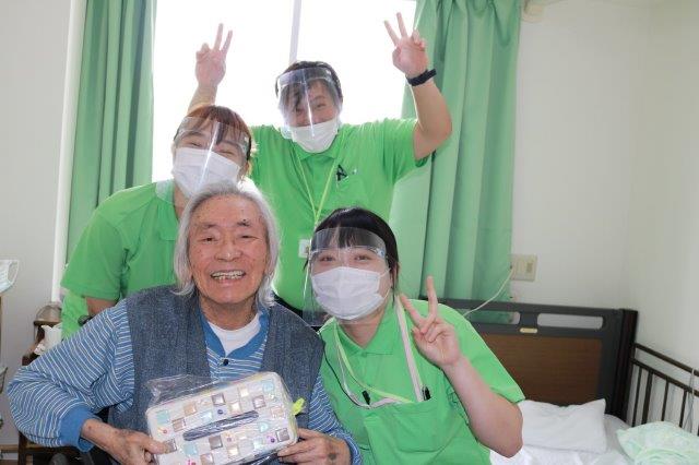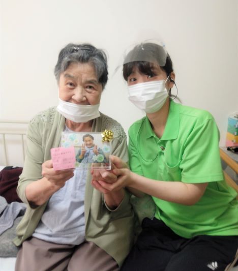 6月生まれの方へ🎁を持ってお部屋に伺いました。