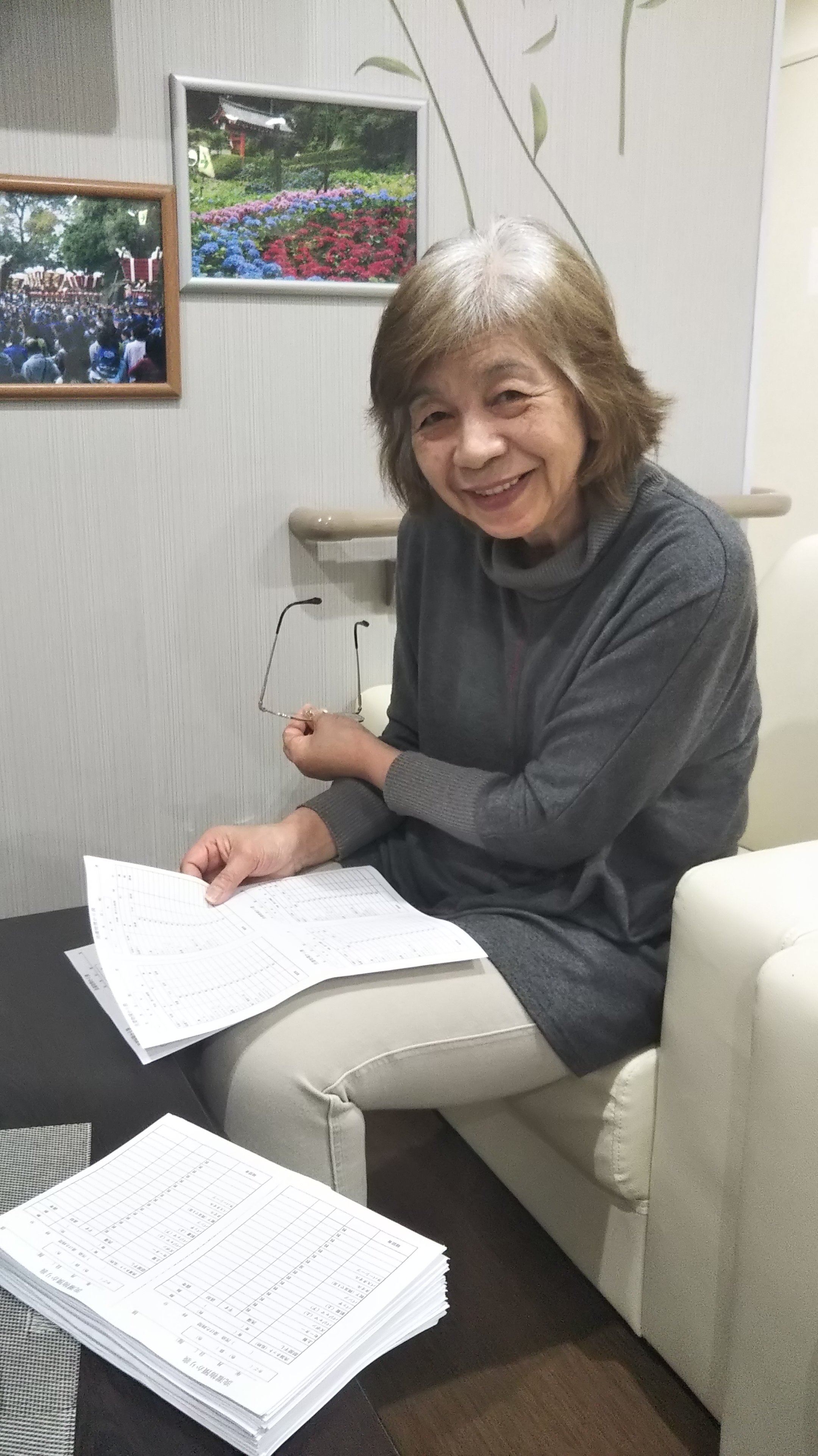 マッサージ機でくつろがれている入居者様も(⋈◍>◡<◍)。✧♡