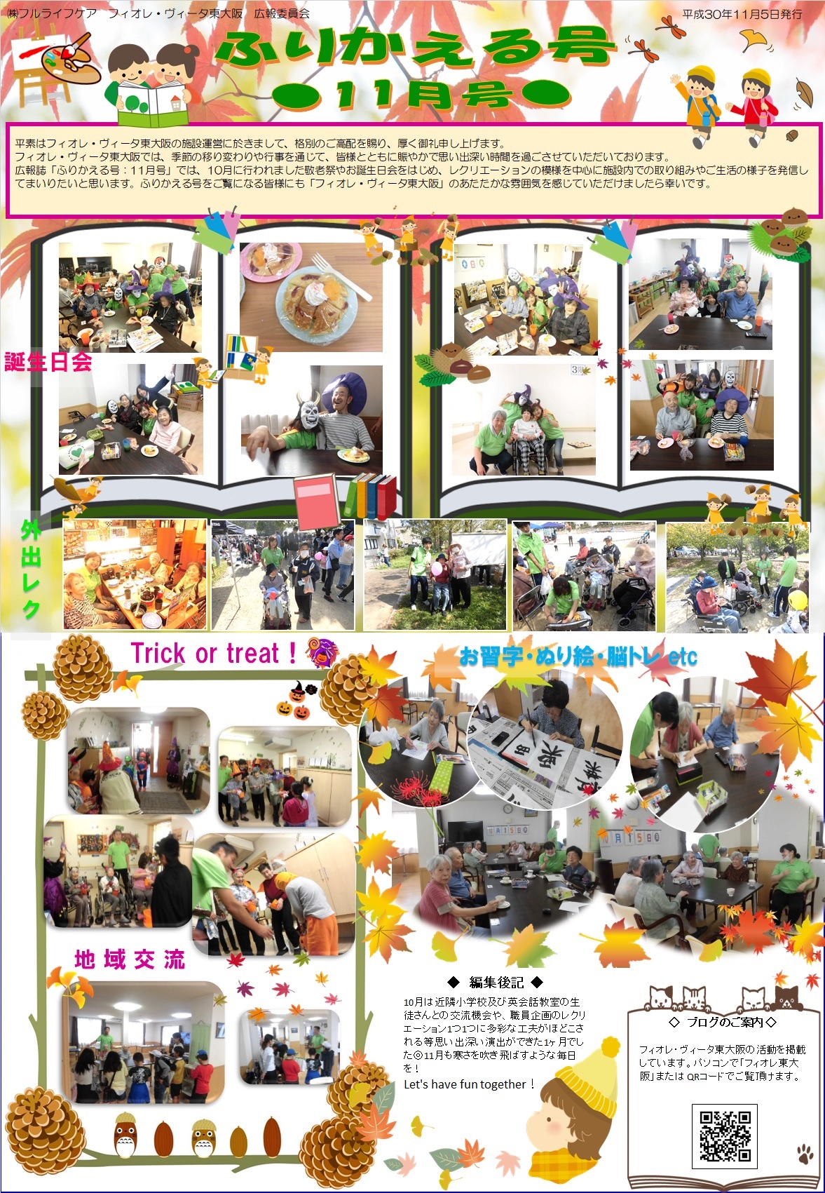広報誌「ふりかえる号11月号」完成致しました。