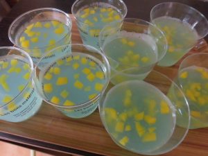 おやつタイムには、とっても涼し気でかわいらしい職員手づくりのゼリーがお目見え✨