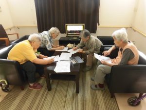 いつも2F談話コーナーで女子会を行っている皆さまに脳トレをご提案しましたら