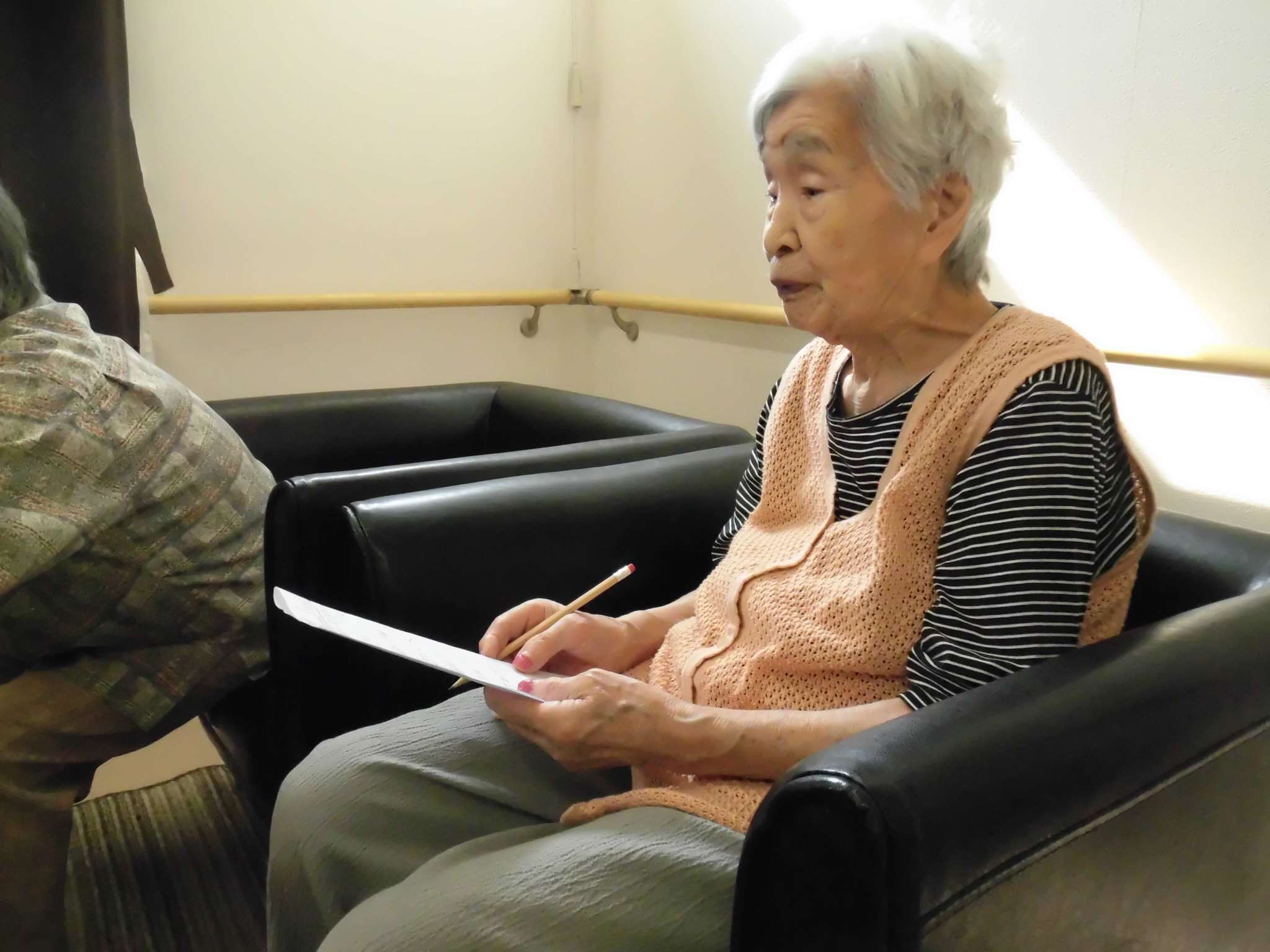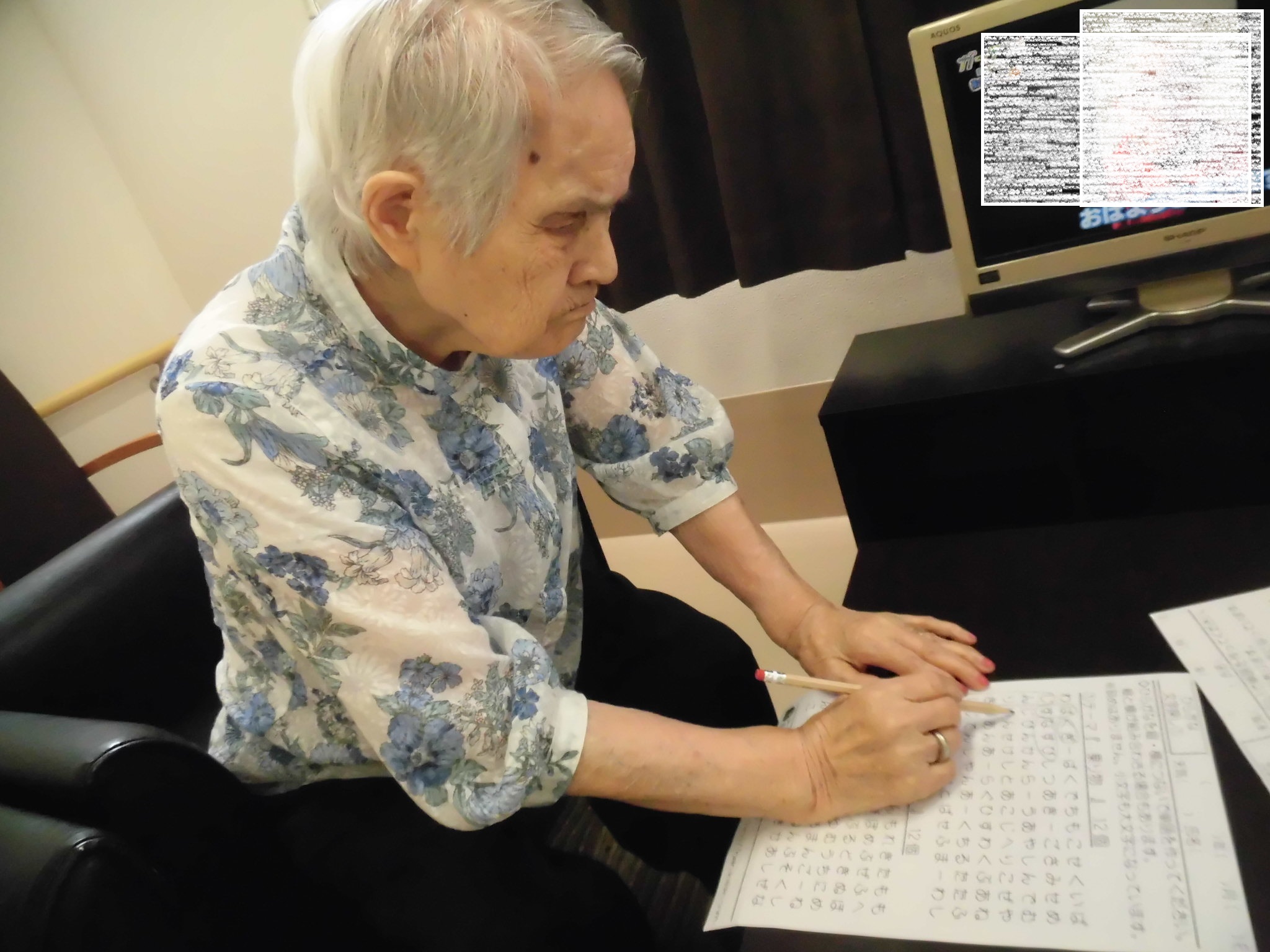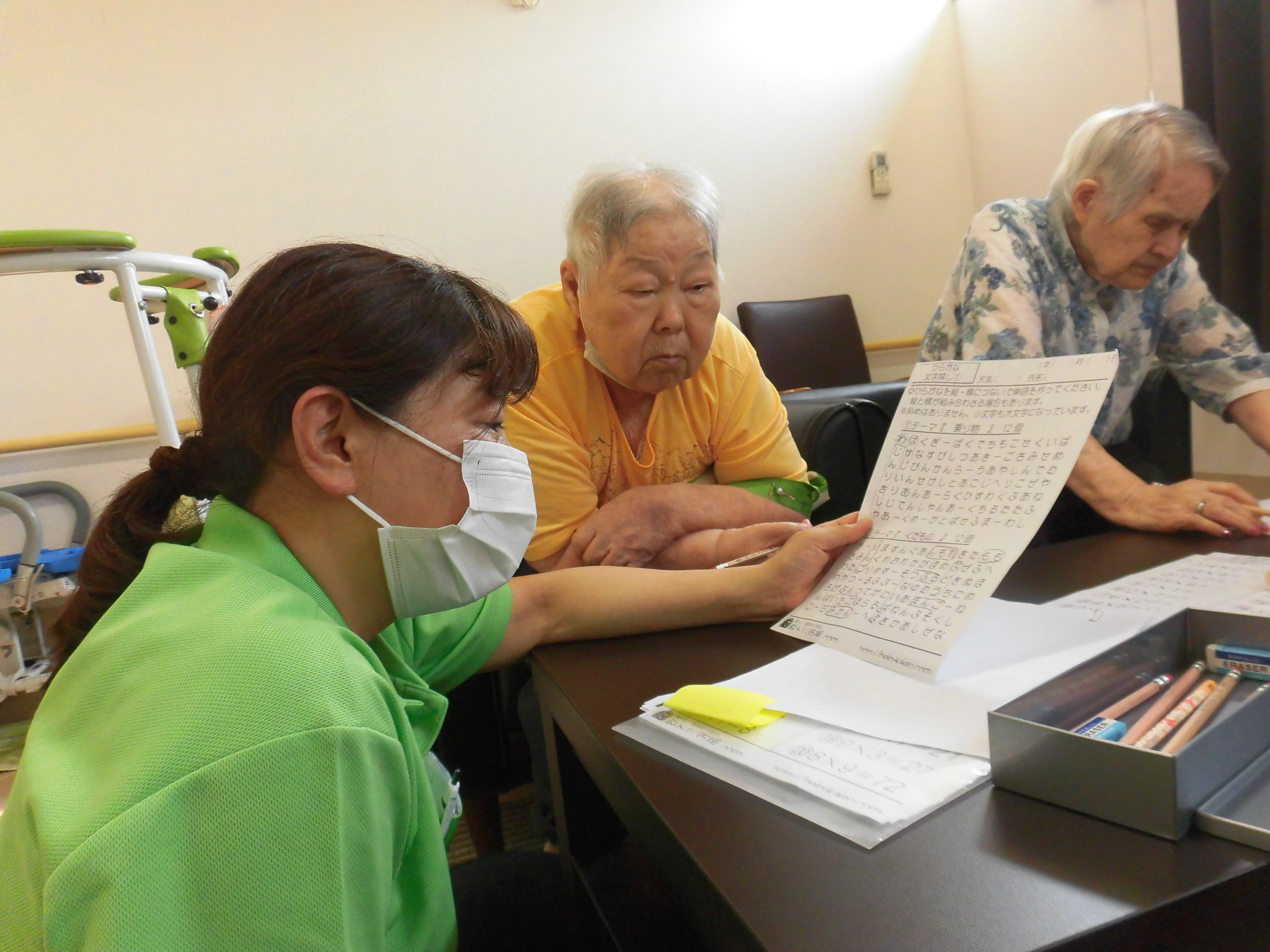 いつも2F談話コーナーで女子会を行っている皆さまに脳トレをご提案しましたら