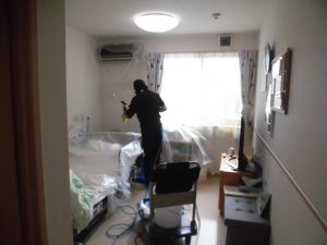 清掃中は入居者さまにもご協力いただき、ほんの少しの間共用部で待機していただきました。