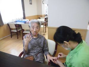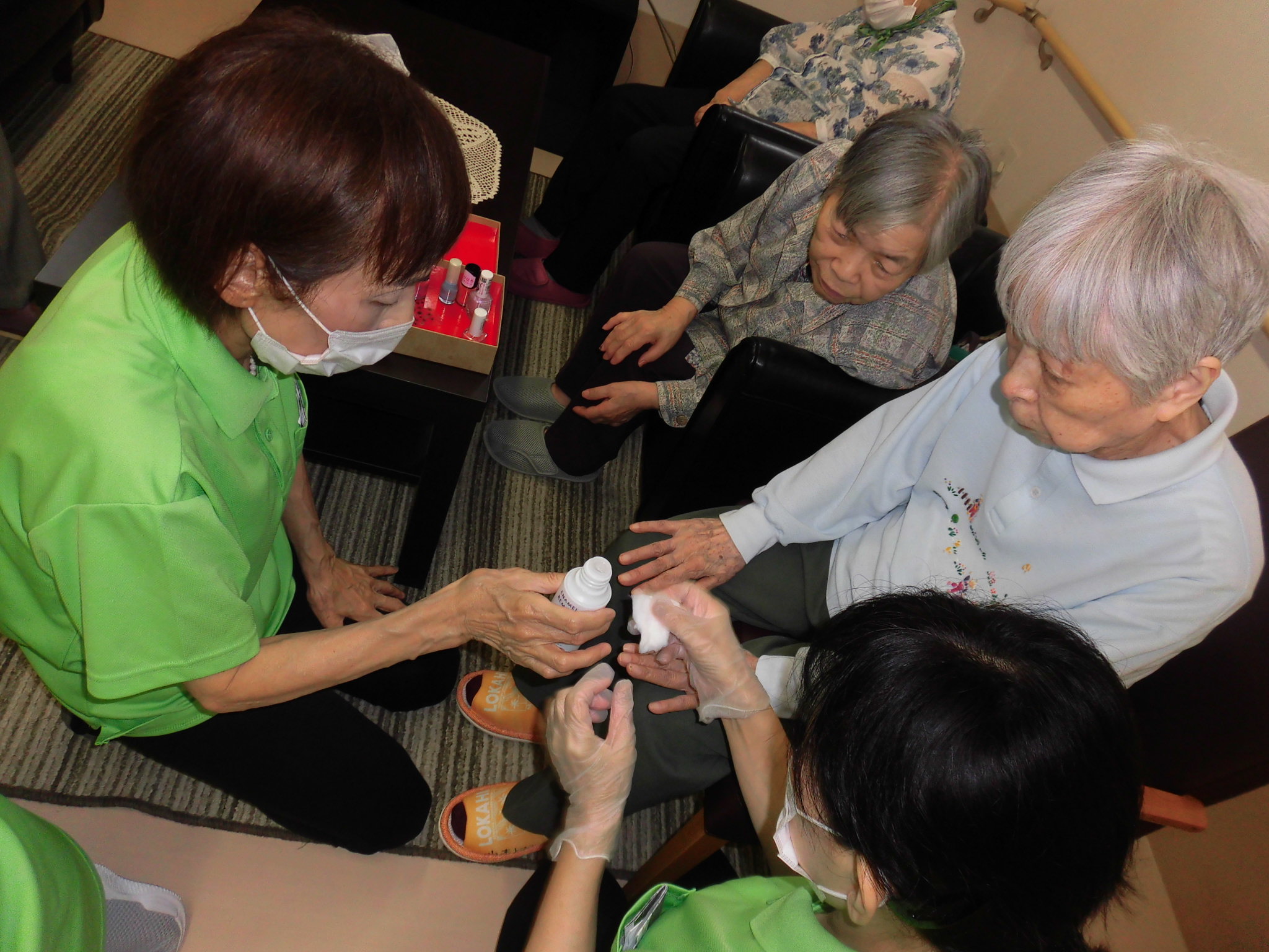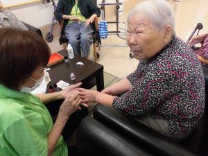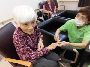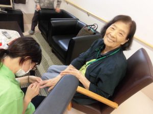 毎日2F談話スペースで行われる女子会におじゃまし、ネイル施術をさせていただきました。