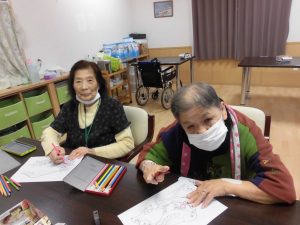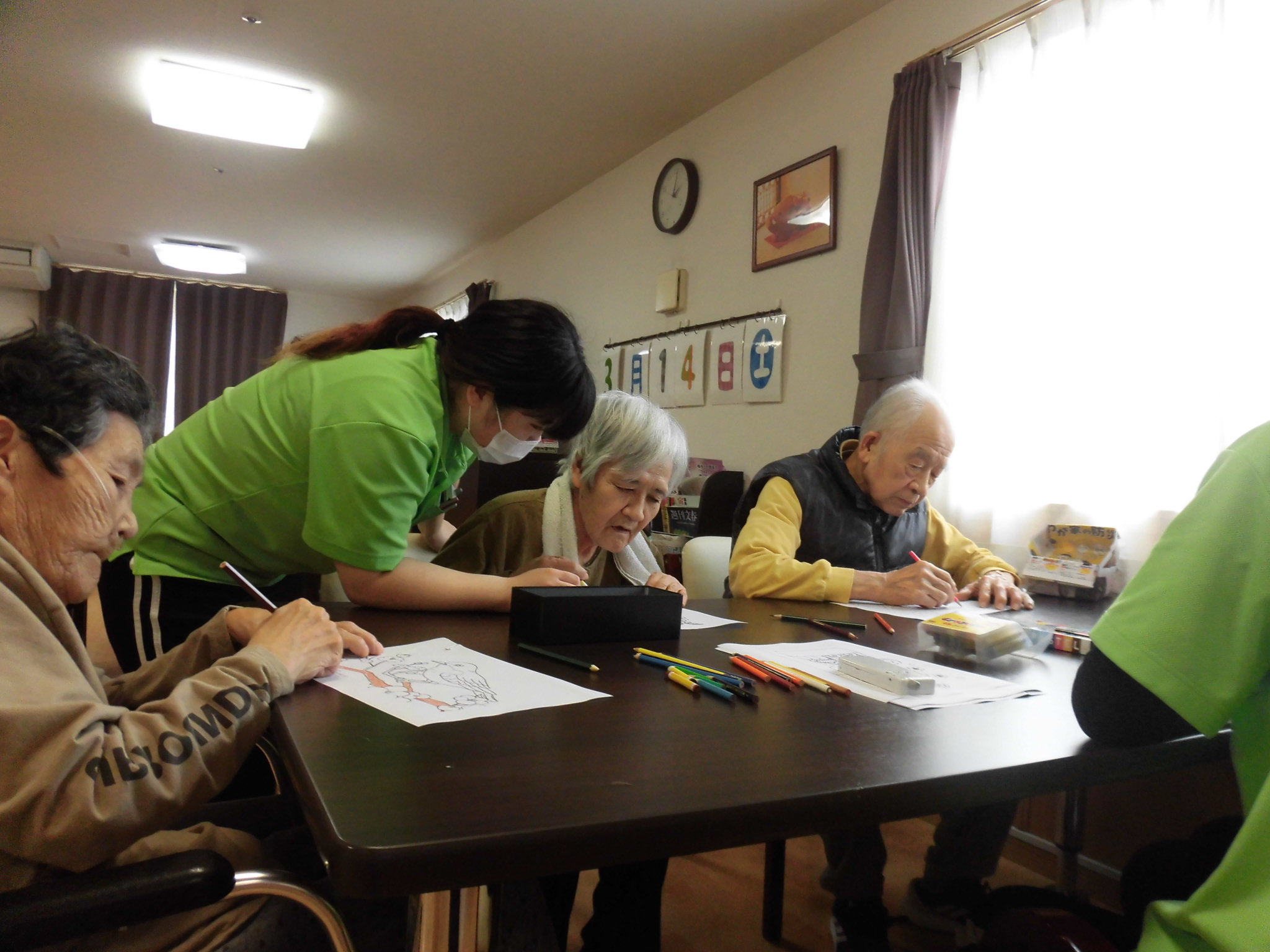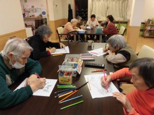 大勢の方にご参加いただき、ぬり絵レクを行いました。