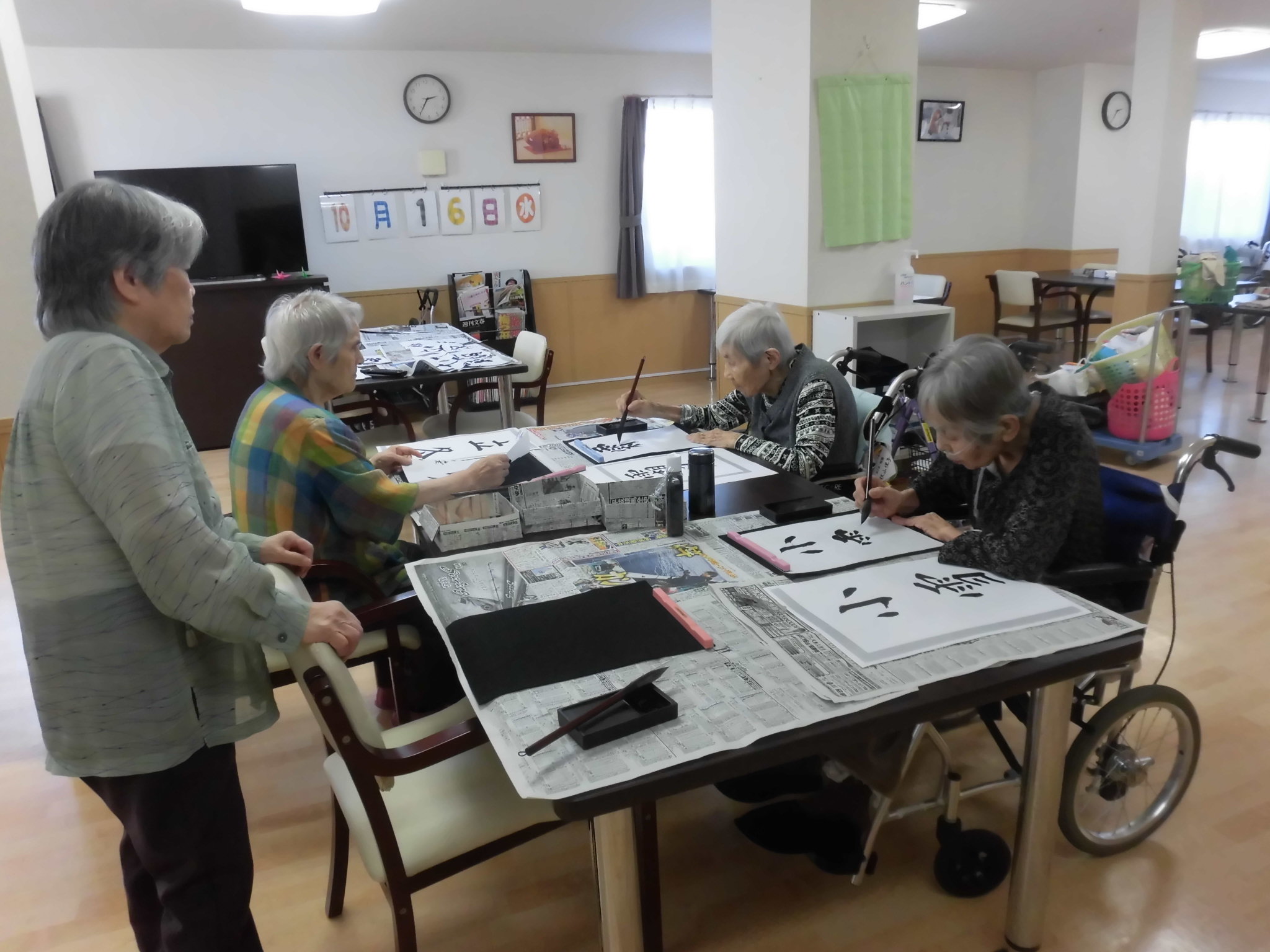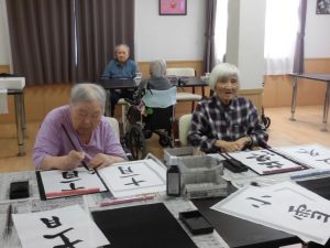 10/16、書道レクを行いました。行っていました。