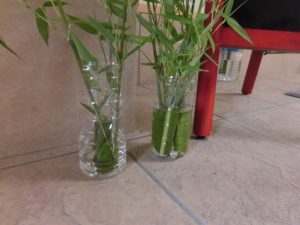ミニ笹をご用意させていただこうとしてましたら、Iサ責が笹の節をキレイに&器用に切って