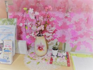施設エントランスでは、一足お先に桜が満開となっております❀