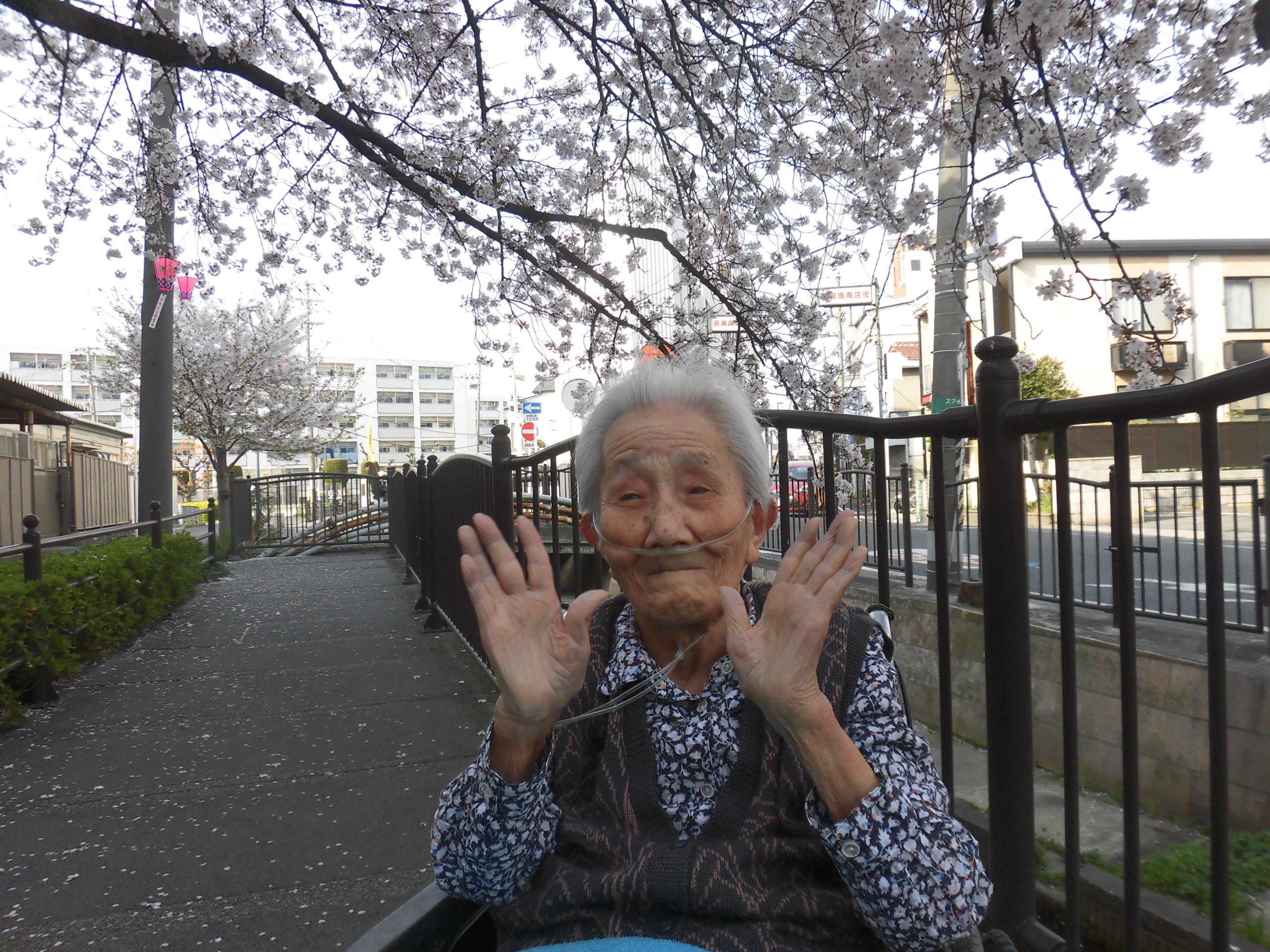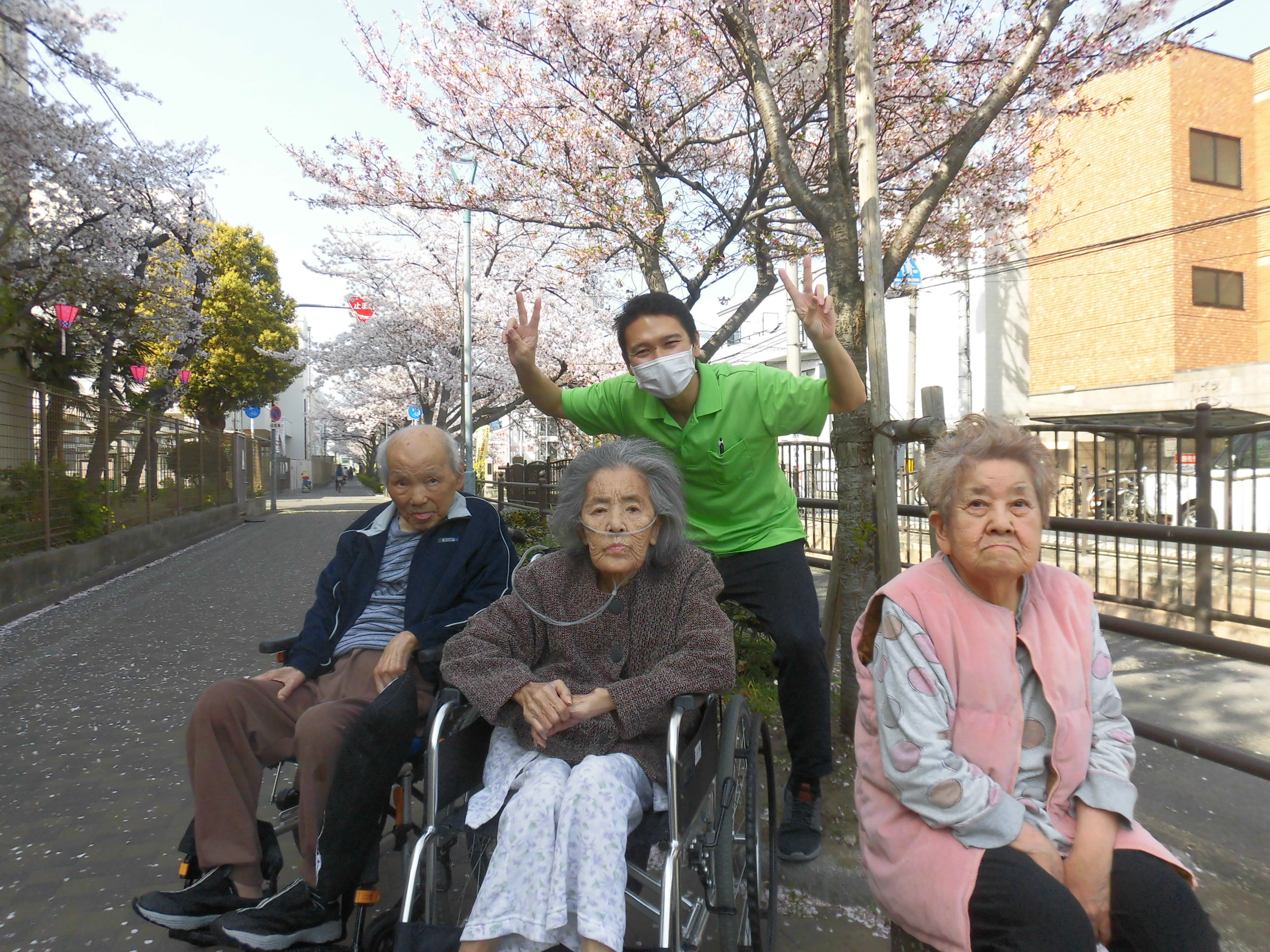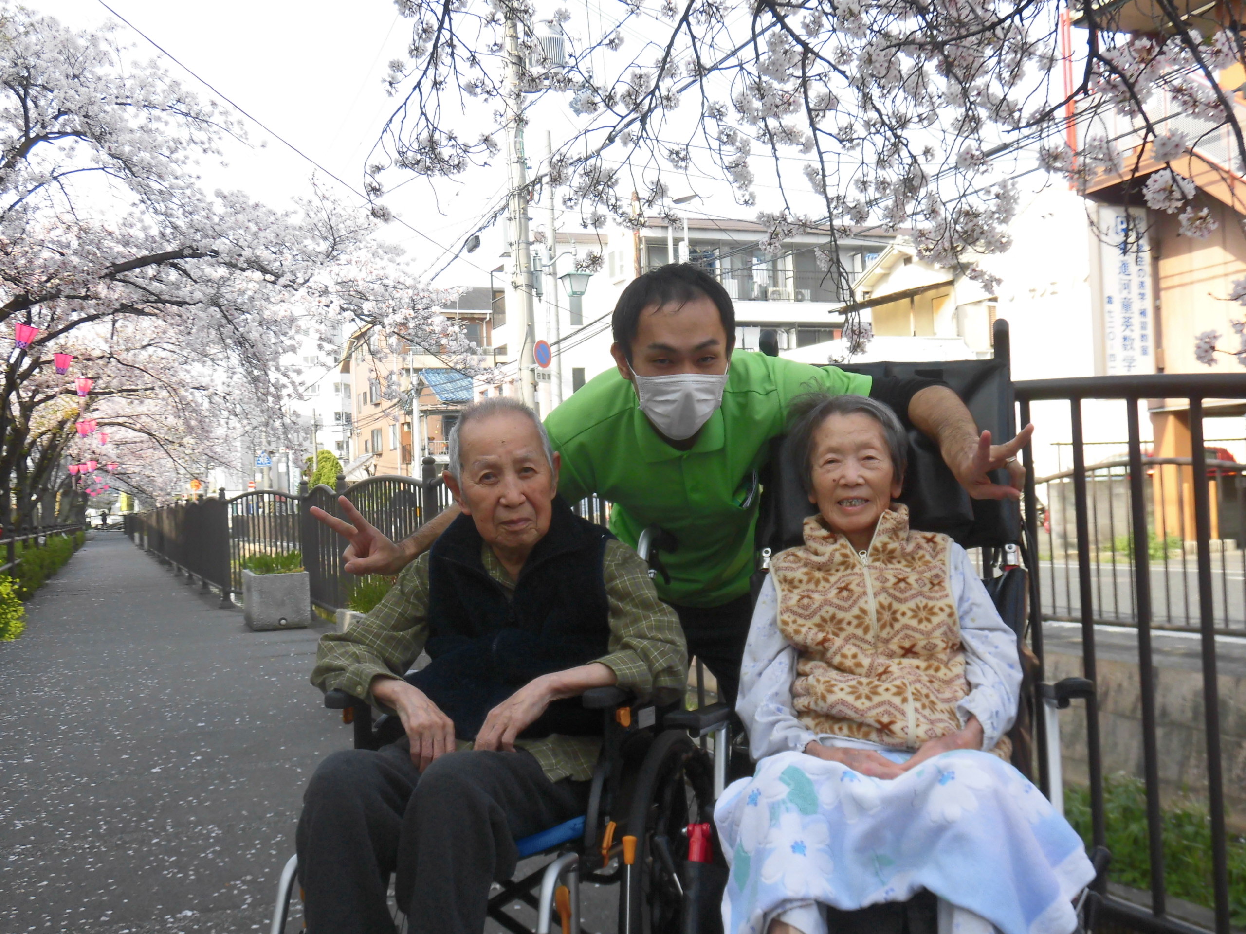 施設からスグの川沿い遊歩道へのお花見散歩、本日も行いました🌸