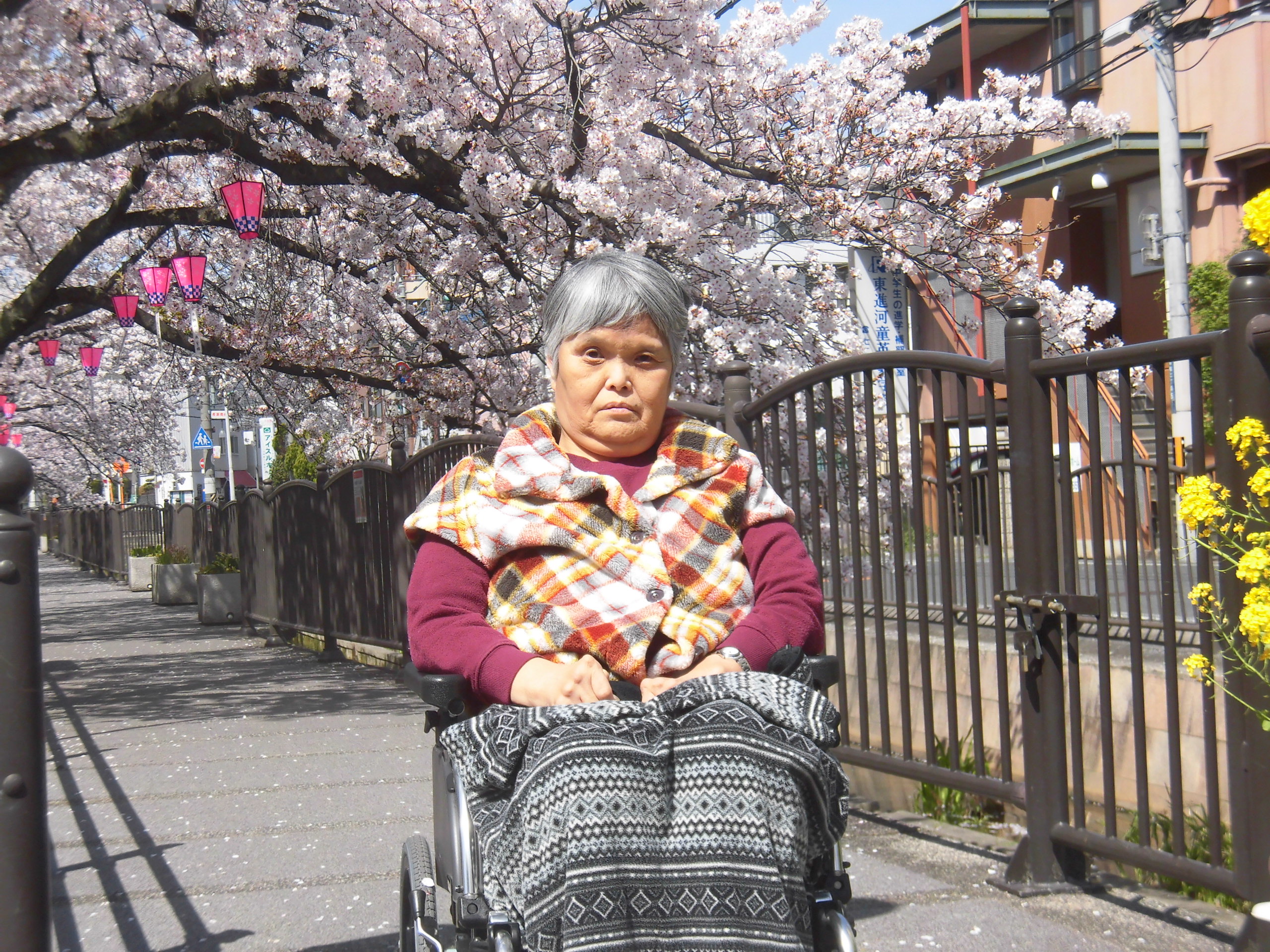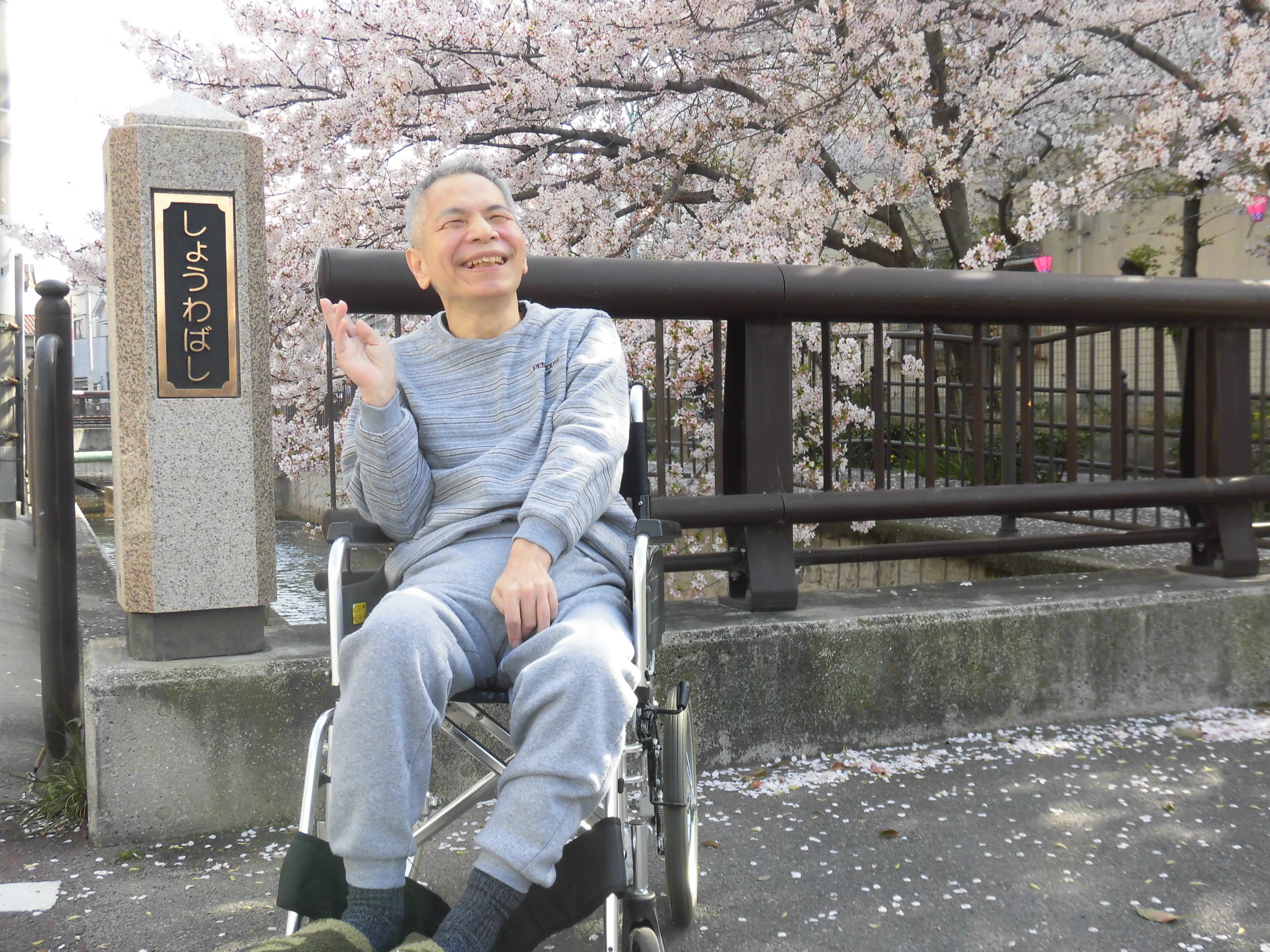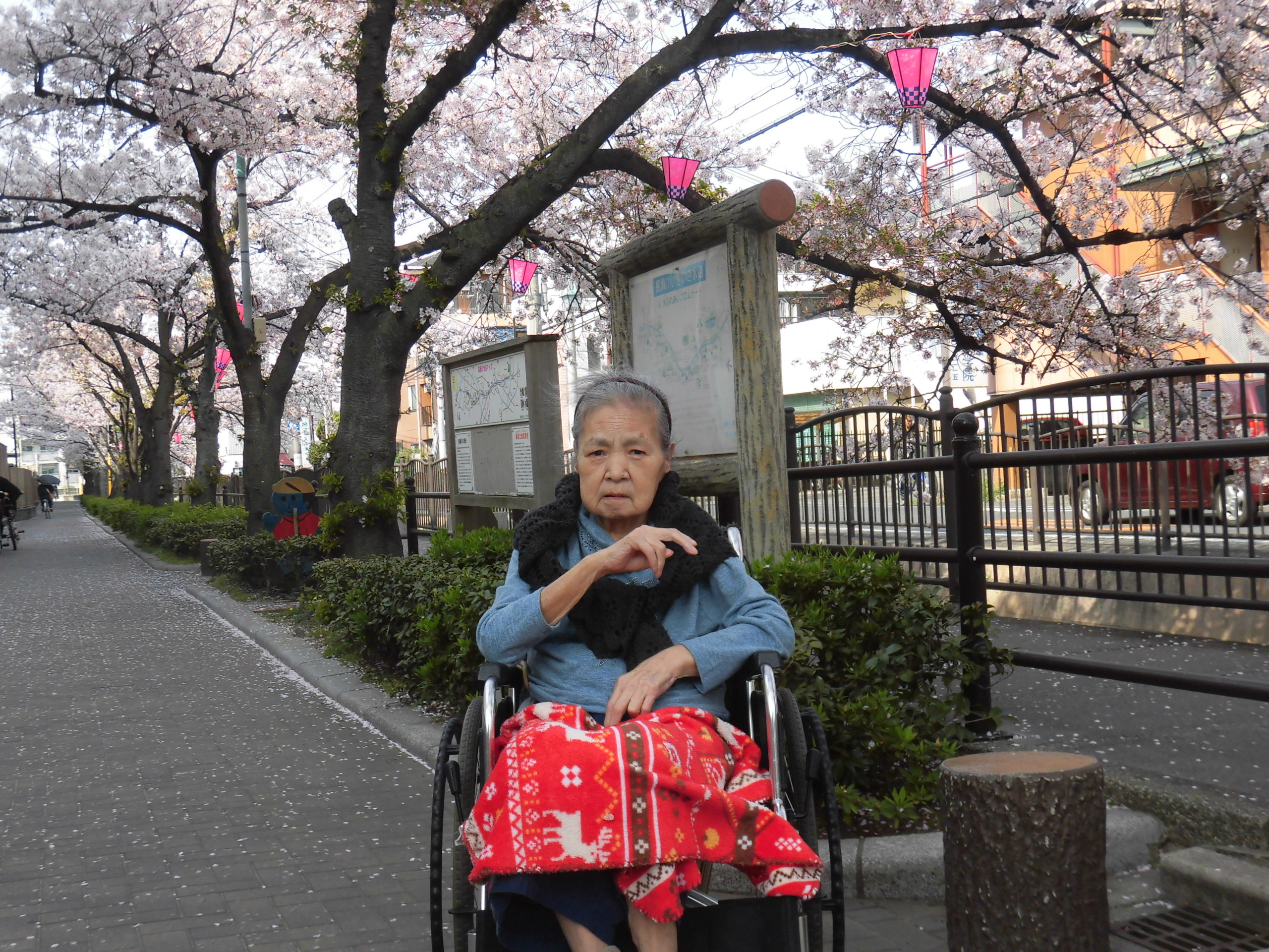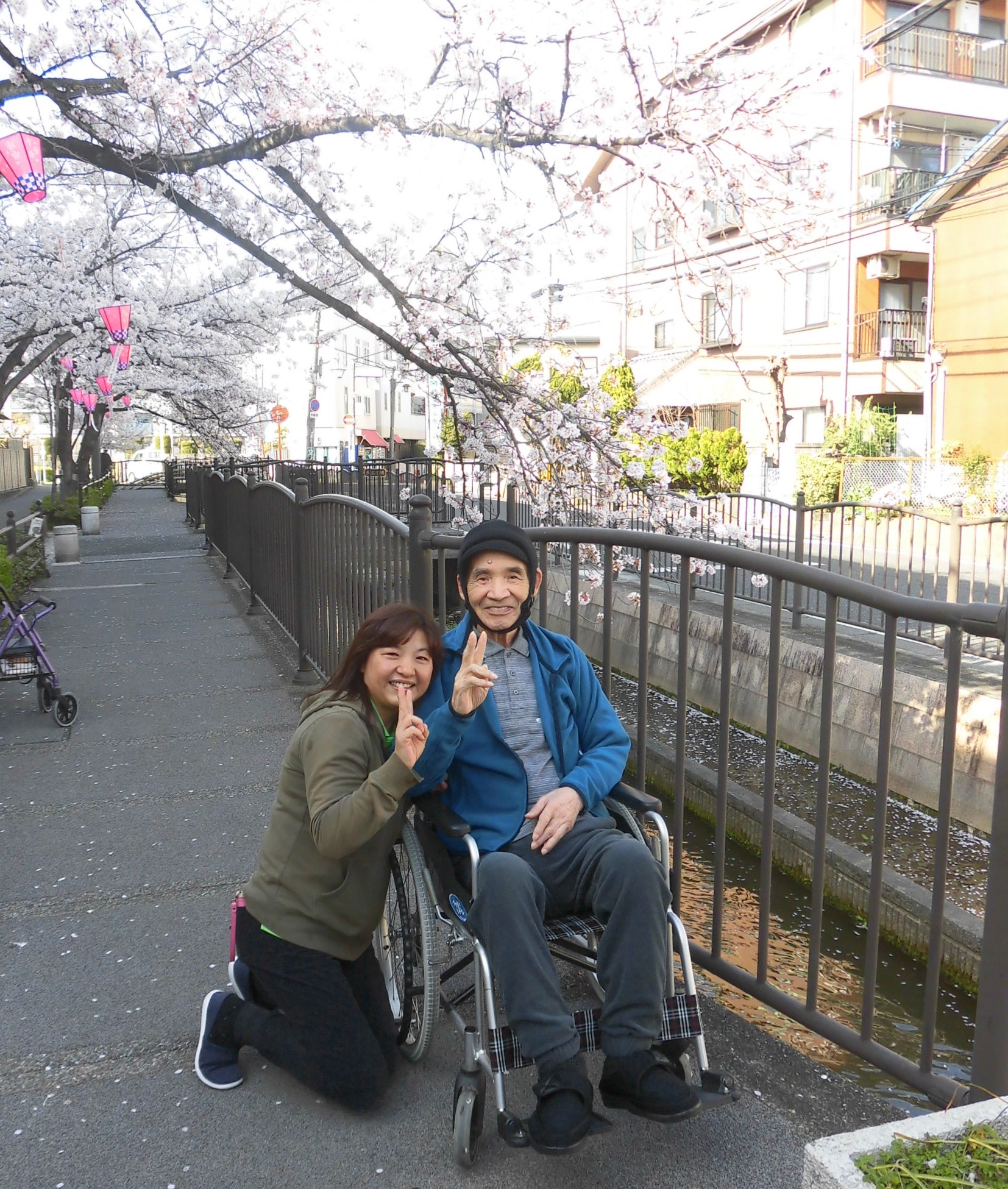 施設からスグの川沿い遊歩道へのお花見散歩、本日も行いました🌸