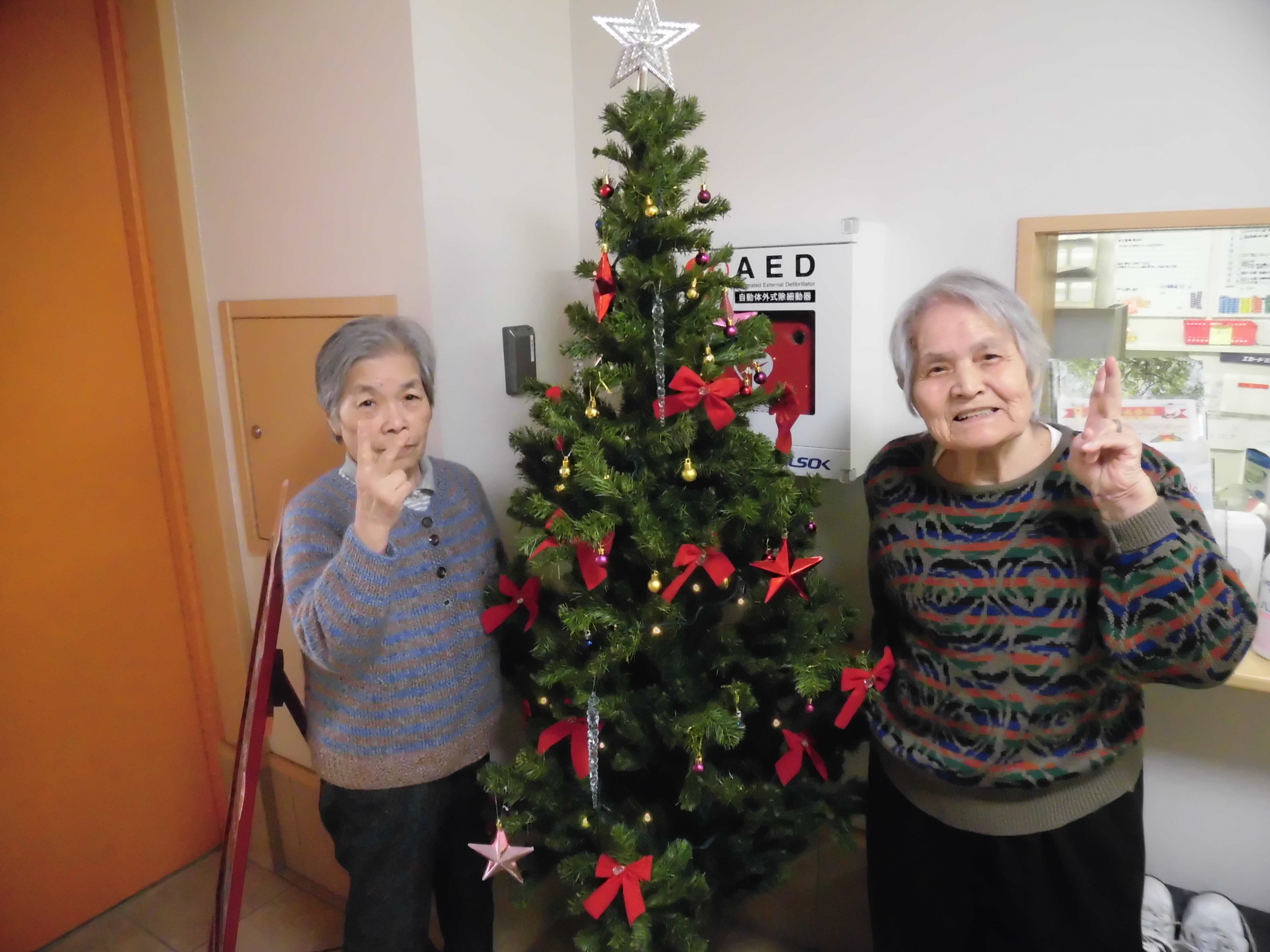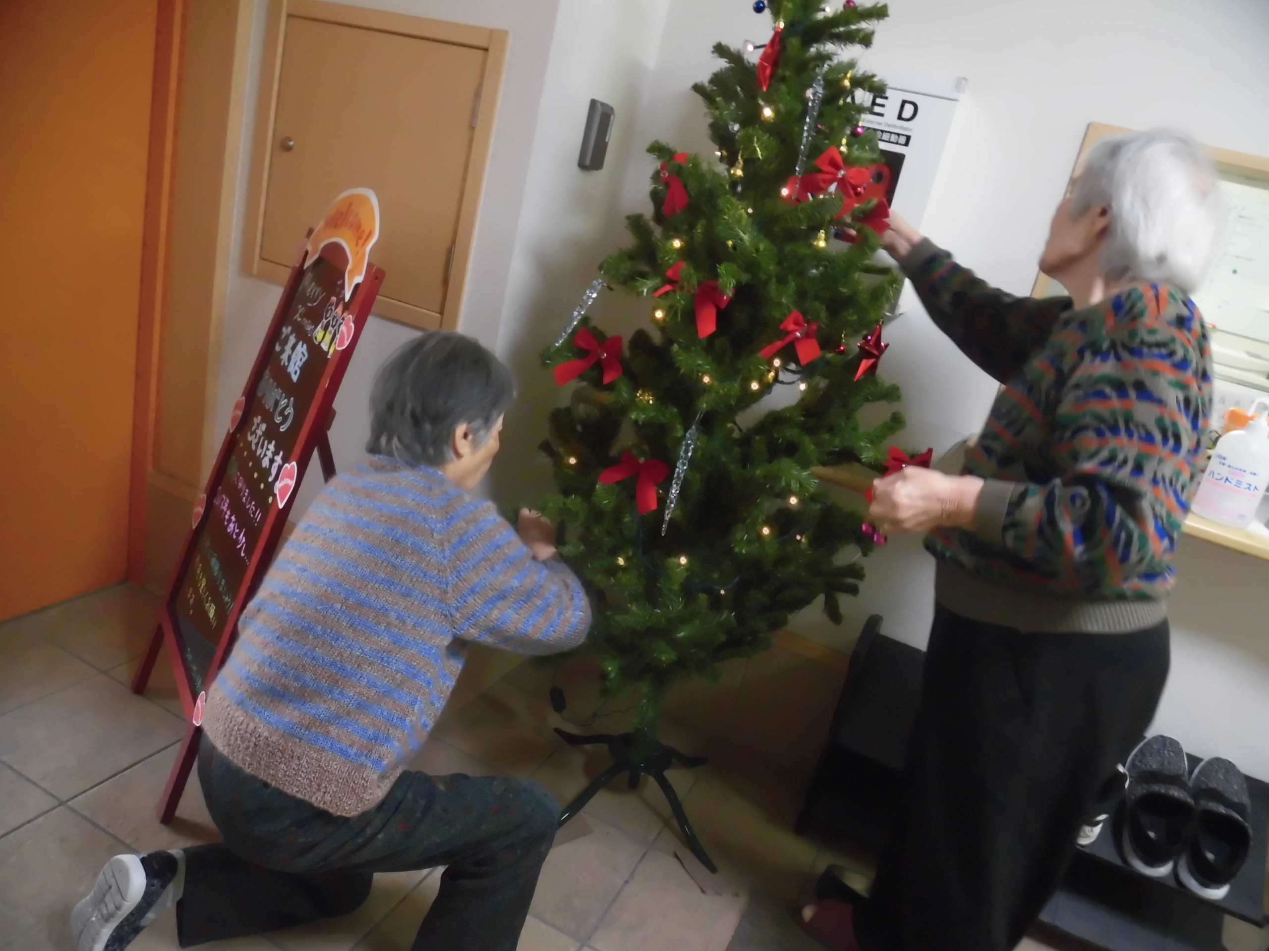 一方、エントランスのツリーの飾りつけを入居者様が率先して行ってくださいました。