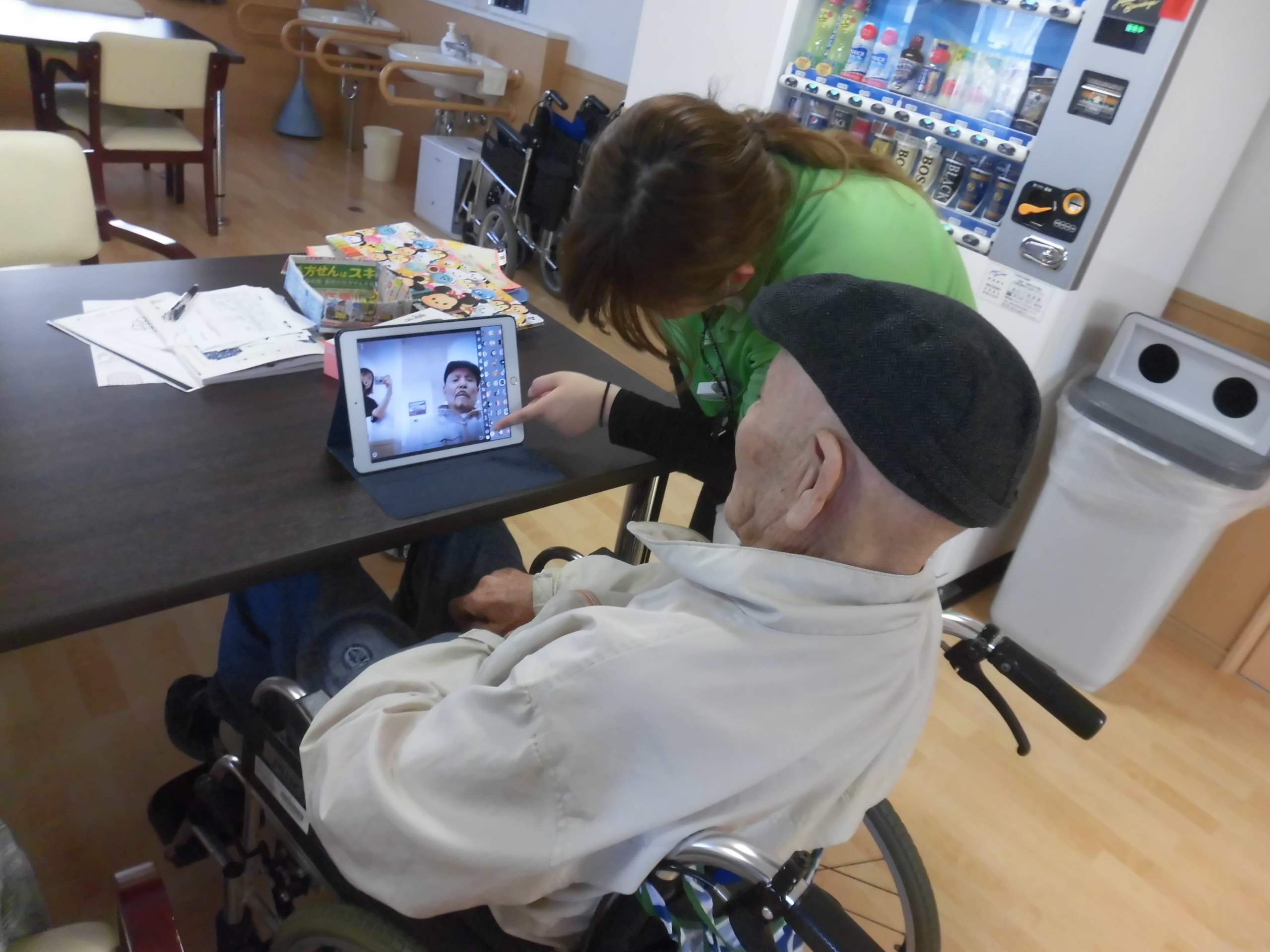 入居者様とO職員とが、食堂で何かに夢中になっているところを発見👀