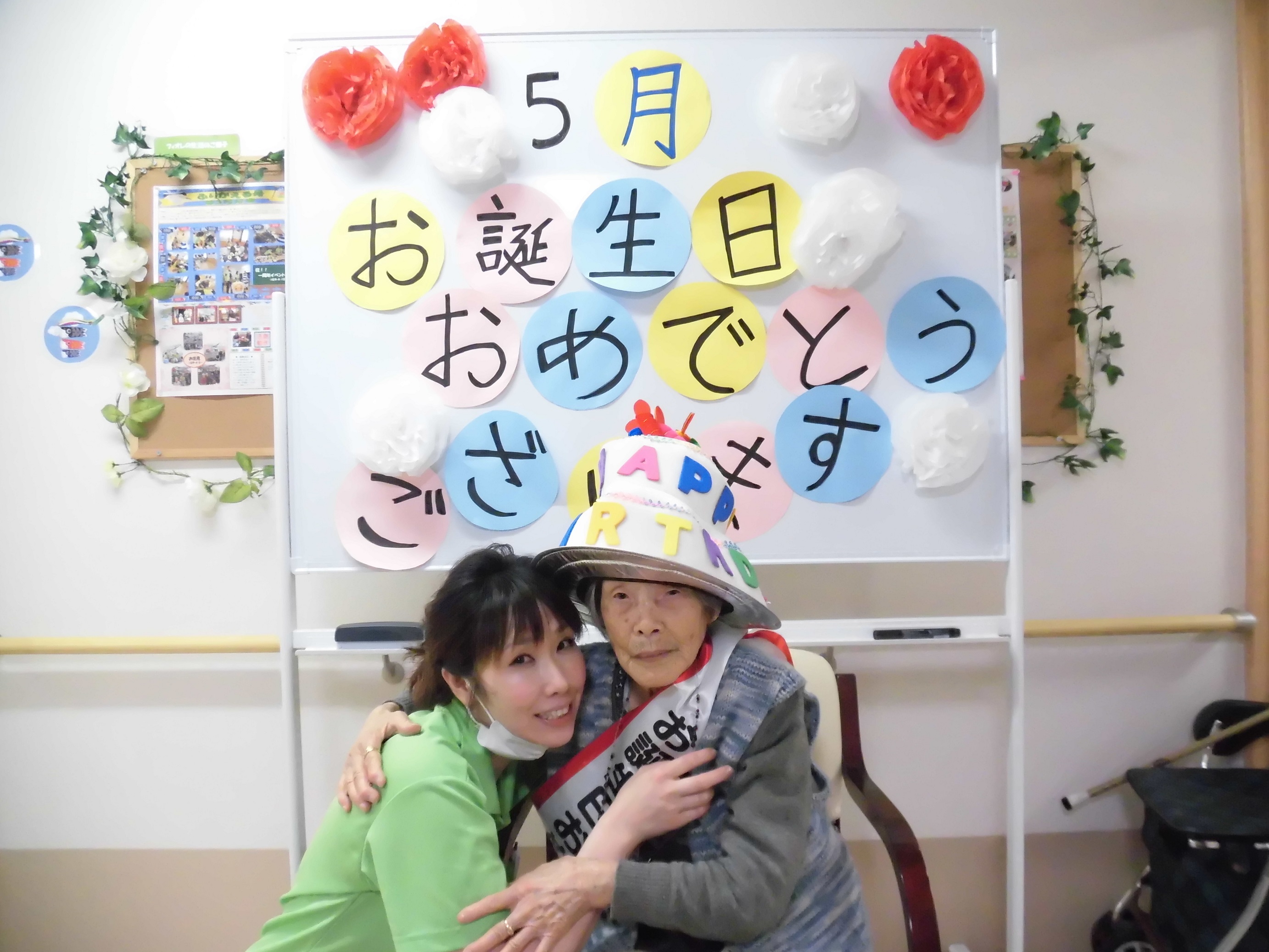 バースディソングを歌ってお祝いし、体操・ゴムボールサッカーでいい汗をかき