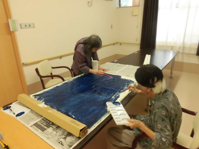 空模様が怪しくなり始めた本日お昼下がり、何やら大掛かりな制作物作成にいそしむY様とM様。