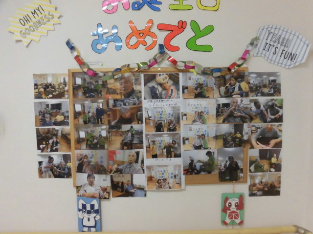 館内各フロアのエレベーター前に、直近レクの模様や普段のご様子を掲示させていただいております。