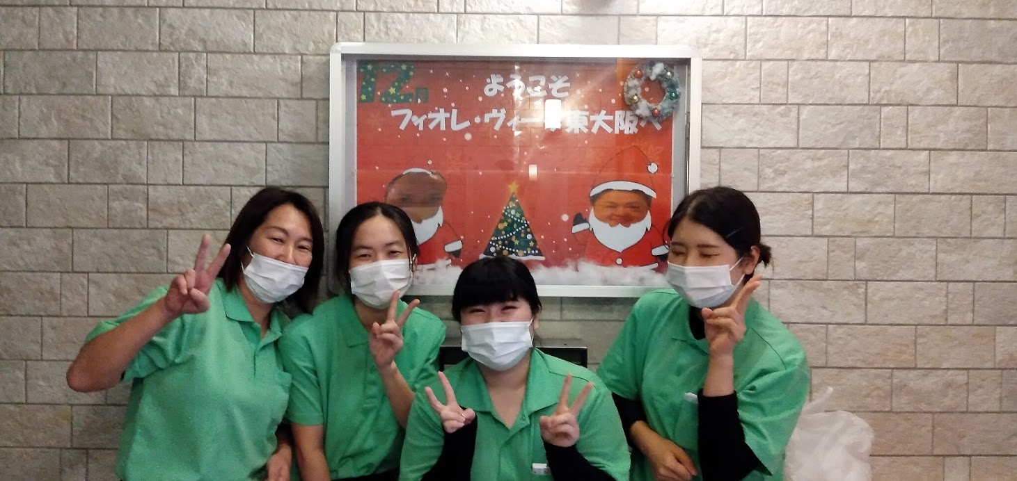 本当に若いケアワーカー3名を巻き込み、玄関装飾を行ってくれました🎅