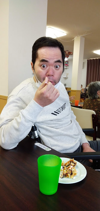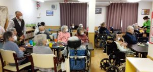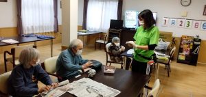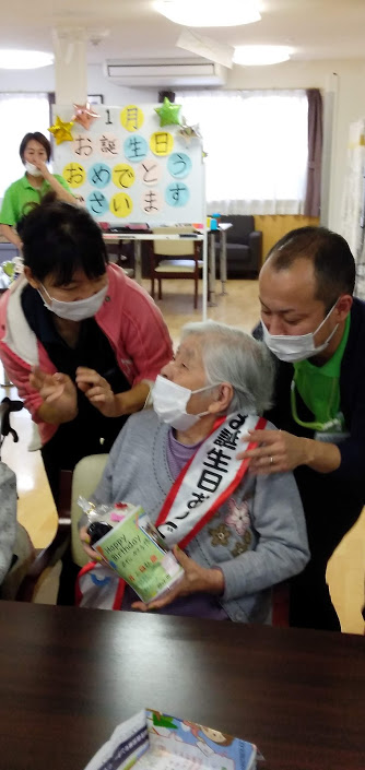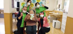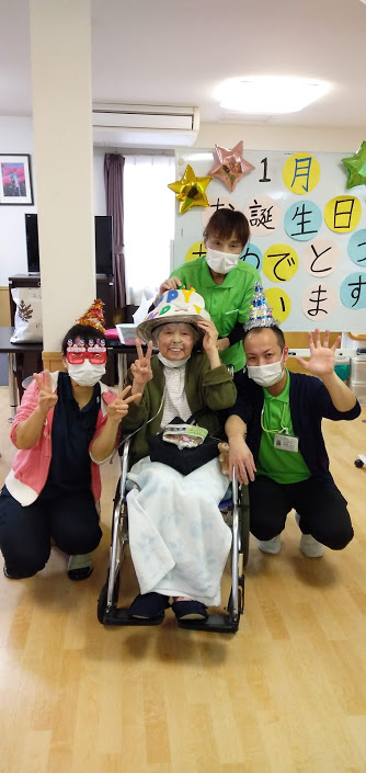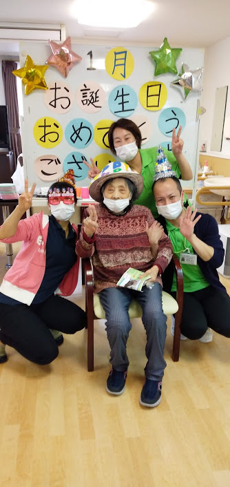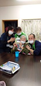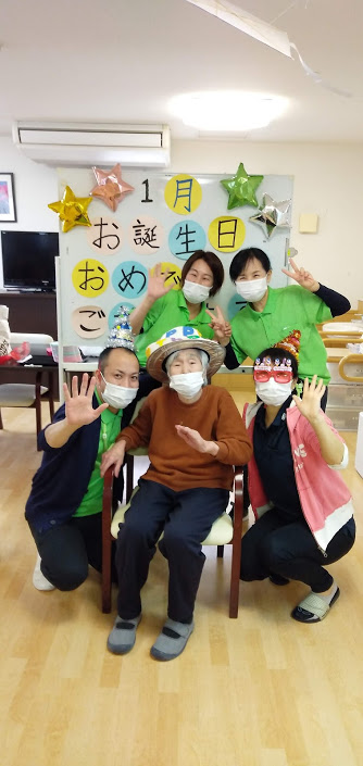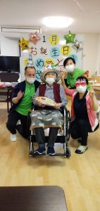 1月生まれの方のお誕生日会をマスクカラオケ&マスク会食形式で行いました。