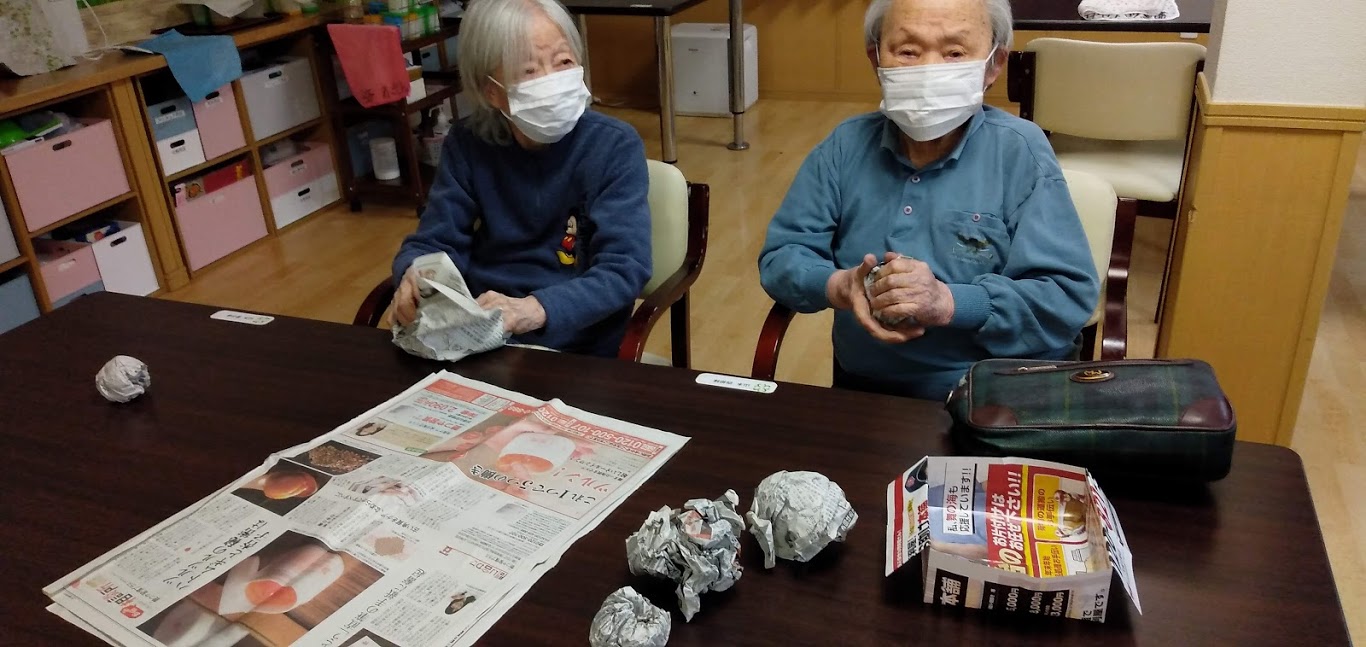 2/2(火)のイベントに向け、従業員&ご利用者様一丸となって新聞紙を丸めます!