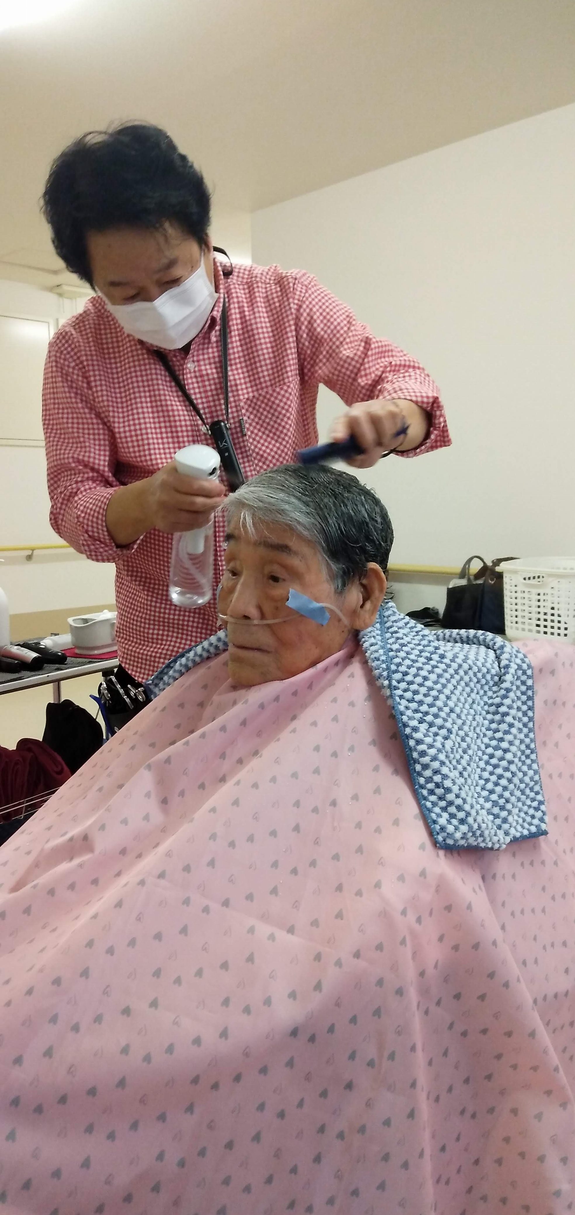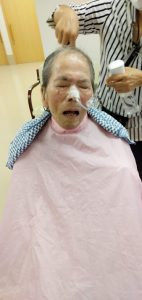 月に一回、ご利用者様のヘアーカットをしてくださっている、訪問理美容の『かみ友』さん。