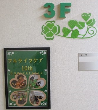 エレベーターの中まで、フルライフケアのクローバーでいっぱいです!