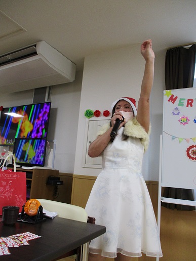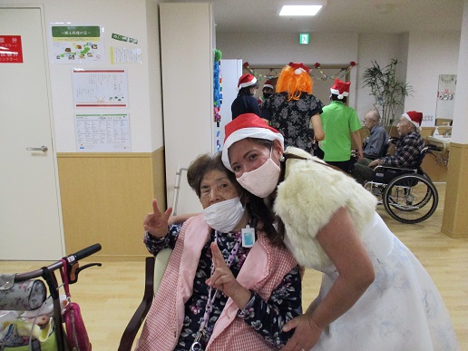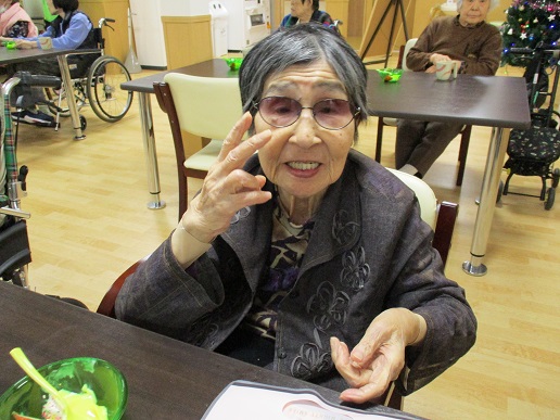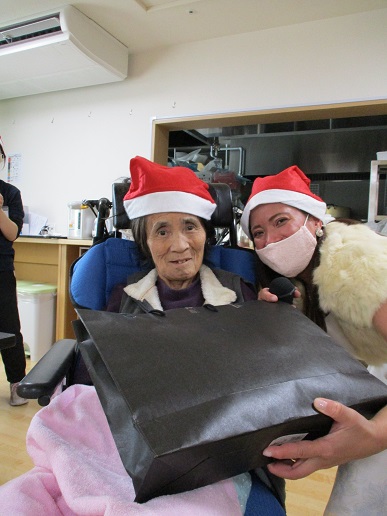 サンタさんからのクリスマスプレゼントに大喜びのご入居者様。