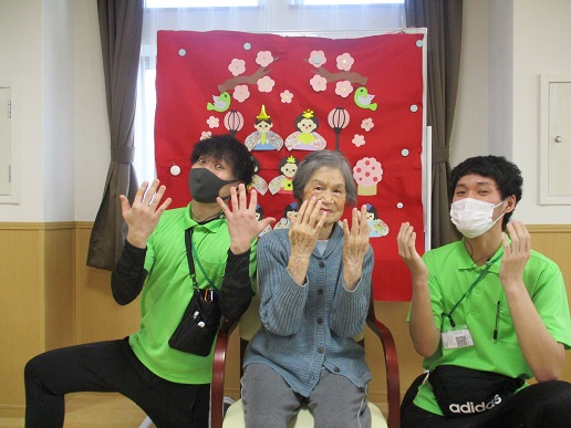 スタッフによるメイクにネイル・ハンドマッサージと美しい入居者様が益々お奇麗になられ