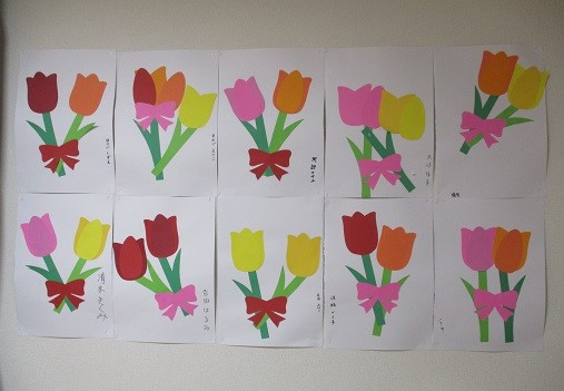 色・リボンの位置等それぞれ違うチューリップですが、皆様の個性が出てとても