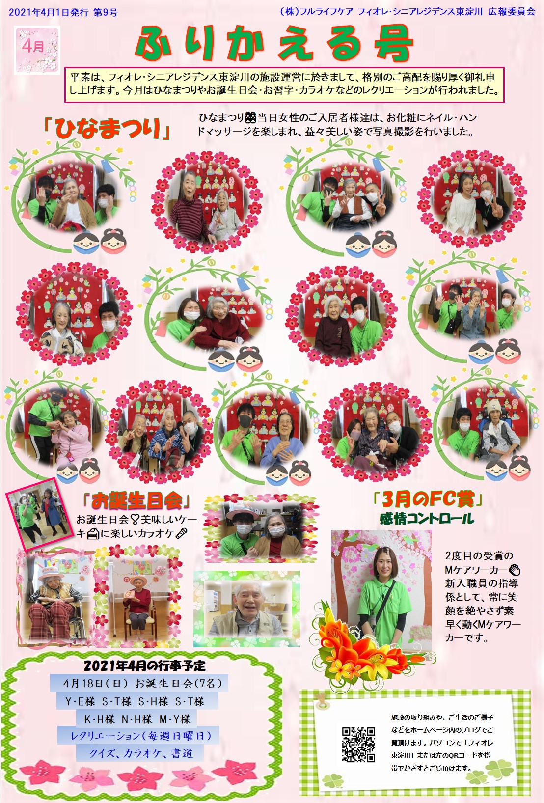 今回は3月に行われたひな祭りレクリエーションの様子を載せています。