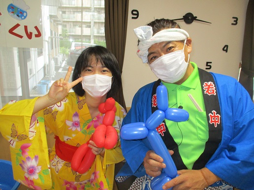 夏祭り当日は、会場いっぱいのバルーンアートにとても癒されました。