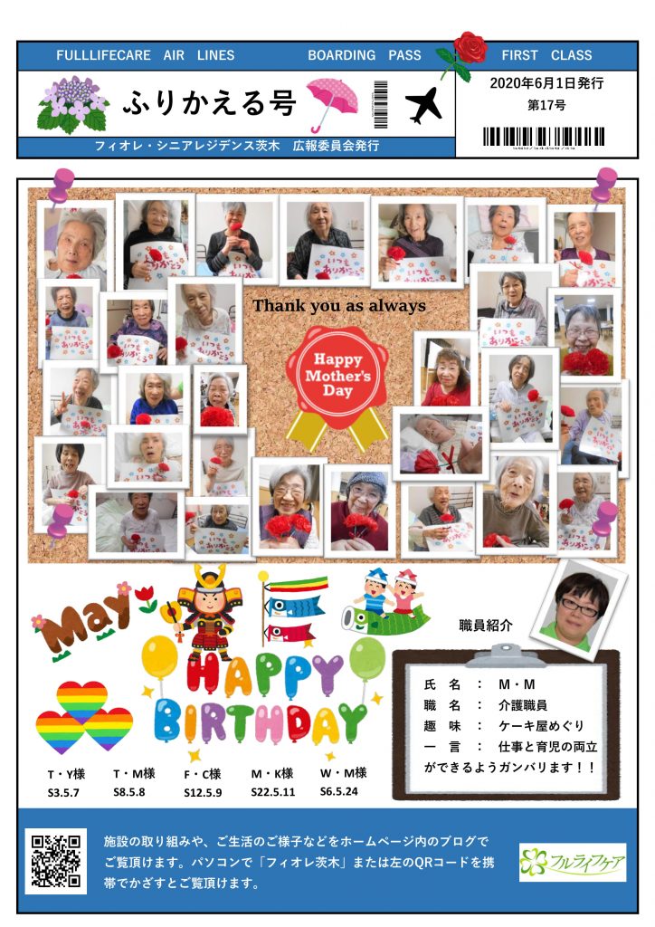 今月の広報誌が完成致しました。今月は母の日バージョンとなっております(^^♪