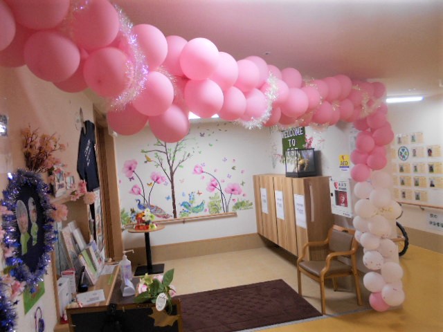 ピンクの風船で桜の花をイメージしてみました(^^♪4月一杯は飾ってます!!