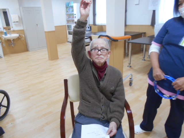 皆様、真剣にそして楽しく音楽レクリエーションにご参加されていました。最後はK様の🦊ポーズで