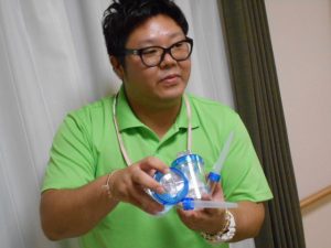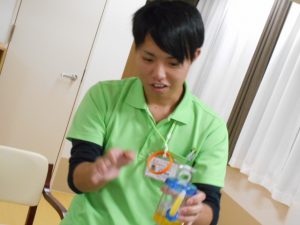 使用方法についての説明を茨木のイケメンパパ、OマネージャーとUサ責がしているところです!