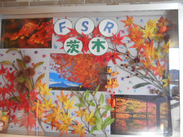 玄関の外にある掲示板の中身が11月秋バージョンに変わりましたよ!