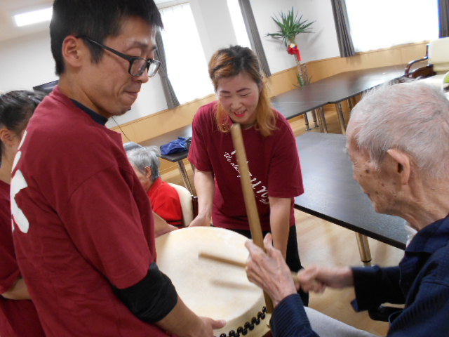 T様・K様を含め、たくさんのご入居者様が太鼓を演奏されておられました(^^♪