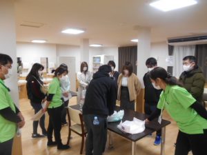 正確なオムツ・尿取りパッドの使用方法の指導中です。利用者様によっては身体の拘縮(関節の可動する範囲が狭くなる)によって、オムツや尿取りパッドの装着位置がずれて排泄物が漏れ出すこともあります。事例に照らし合わせながら、正確な使用方法を学び、利用者様に快適にお過ごしいただけるよう、従業員一同精励して参ります。