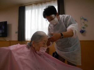 感染対策は万全に行いました。ご協力いただきました訪問理美容の「かみ友」様、ありがとうございます!