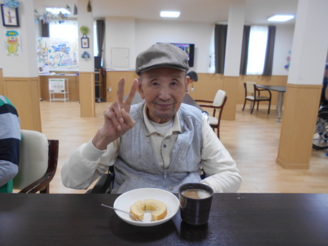 甘いバウムクーヘンとコーヒーを召し上がっていただきましたよ!(^^)!皆様美味しかったでしょうか!!