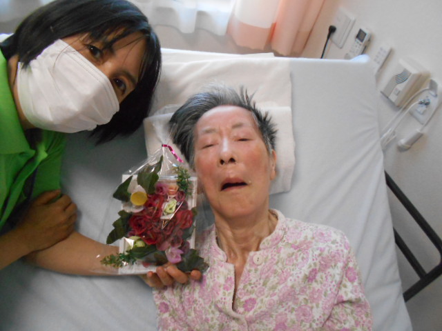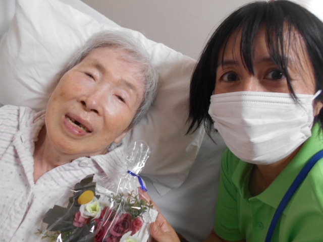 今月は27日にお誕生日を迎えられる利用者様のお部屋に伺って、お祝いの言葉と共にプレゼントを
