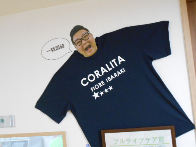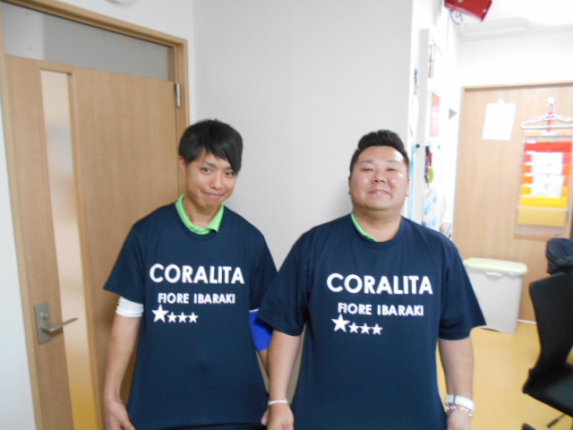 「花」という意味らしいので、一致団結を表すイタリア語の「CORARITA」を胸に大きくあしらってみました。いかかでしょうか?これからも職員が一致団結できる職場であるよう頑張って参ります。
