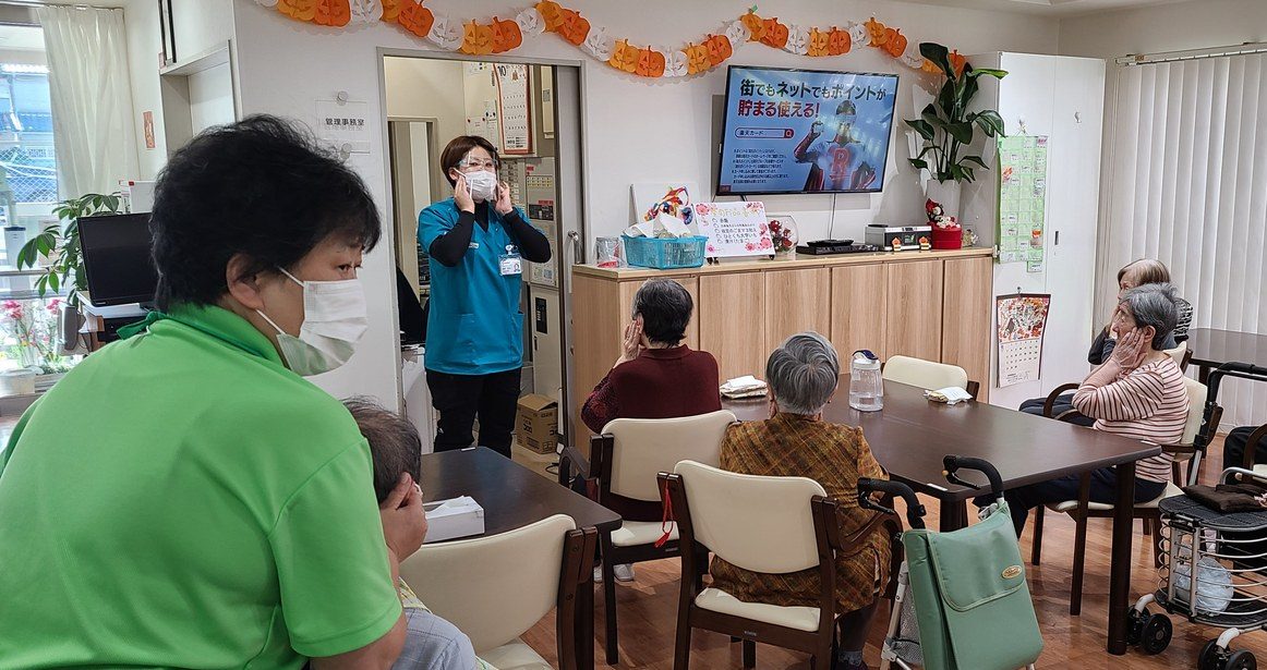 少し前ですが、11月1日にKEiROW茨木ステーション様のご協力のもと、食事前に口腔体操をして頂きました(人´∀`)アリガタヤ