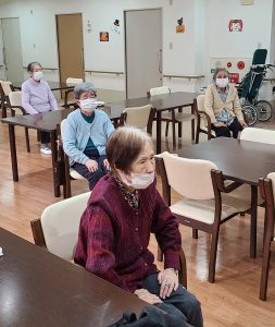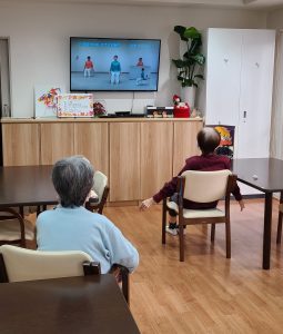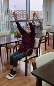 毎朝10時に食堂にて体操を行っています└(o゚∀゚o)┘
