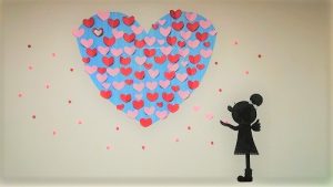 女の子の手から♡が出てきて、その♡が集まり大きな♡に、、、